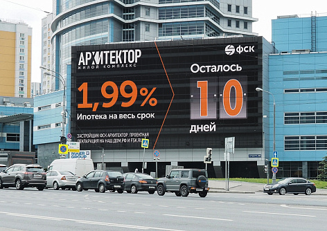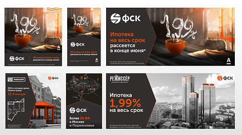 Новое позиционирование отразилось в новой креативной рамке. Главные герои печатных сообщений – объекты недвижимости ФСК. Выделиться в красочном конкурентном окружении им помогает черно-белое изображение, с вкраплением оранжевых элементов.