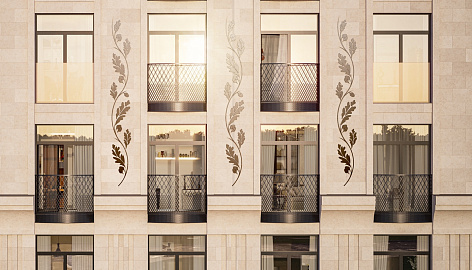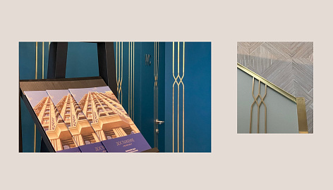 Благородные цвета, и элегатный графический стиль с мотивами ар-деко подчеркивает торжественную тональность сообщений, украшает не только рекламные материалы, но и элегантно интегрирован в интерьеры и экстерьеры дома.