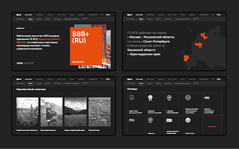 В визуальном исполнении стояла задача создать уникальное для рынка «цветовое пятно», которое позволяло бы выгодно отстроить нас от конкурентов. В итоге ставка была сделана на сдержанную черно-белую гамму с оранжевыми акцентами.