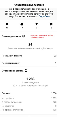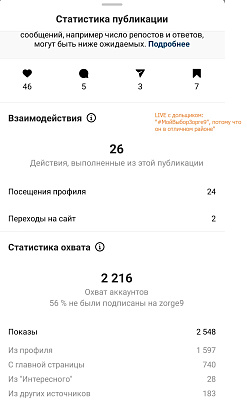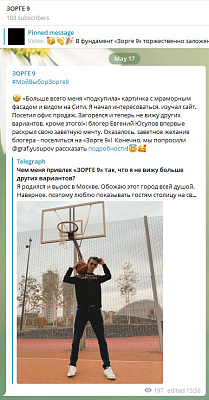 В Instagram: охвачено 1 288 аккаунтов, 60% из которых ранее не были подписчиками zorge9, видео было просмотрено 865 раз. На тот момент в канале было менее 2 тыс. подписчиков. По результатам интервью было куплено 3 апартамента в "Зорге 9", еще одна сделка сейчас оформляется.