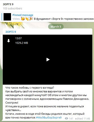 В Telegram: 141 просмотр при на тот момент 40 подписчиках в канале.