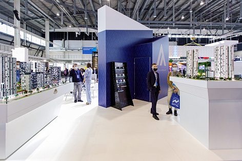 Первым стендом, который увидели посетители выставки, был стенд компании "Атлас Девелопент", выполненный в стиле минимализм.