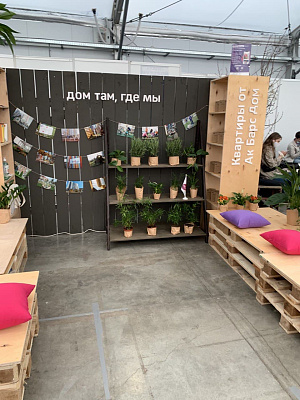 Эко-станция состояла из уютной фотозоны, украшенной фотографиями счастливых жителей проектов "Ак Барс Дом", места отдыха для гостей фестиваля и непосредственно полок для сбора книг.