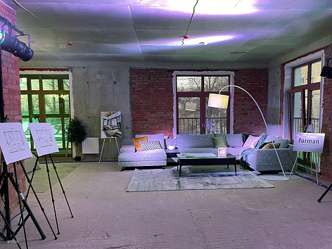 Затем мы пригласили гостей на экскурсию по шоу-румам на демо-этаже. На один вечер эти квартиры свободной планировки, без отделки и освещения, наполнились светом, музыкой, предметами интерьера и искусства. Даже на фоне черновой отделки мебель и декор выглядели уютно и стильно. Все предметы обстановки были предоставлены партнерами бесплатно, и это позволило сократить бюджет более, чем на 1,5 млн. рублей.
