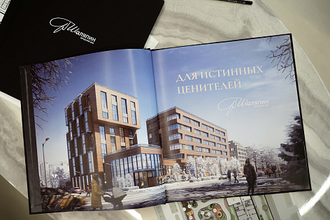 Премиальное качество жилого проекта отражено и в оформлении буклета: эстетика и элегантность в каждой детали дизайна, высокий стиль текстов, лучшие материалы для печати.