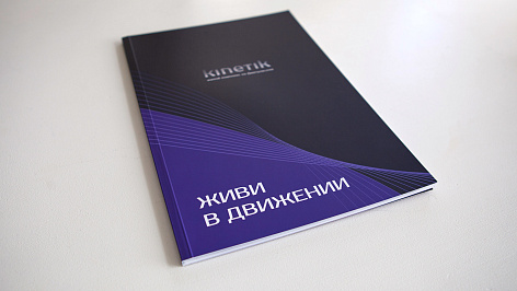 Буклет KINETIK — это имиджевое издание книжного формата А4, его удобно читать как с рук, так и на столе в Отделе продаж. Матовая ламинация защищает обложку от деформации.