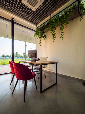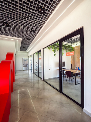 В офисе продаж – грамотное зонирование пространства: помещение условно разделено на два сектора – для клиентов и штаб для менеджеров. Эргономичные переговорные комнаты и общие зоны формируют чёткое представление у клиента о продукте и уровне сервиса компании.