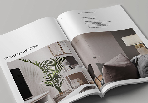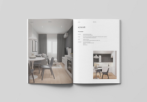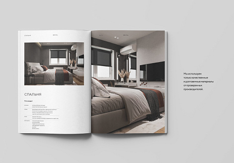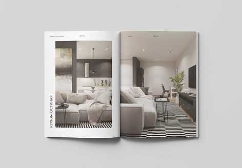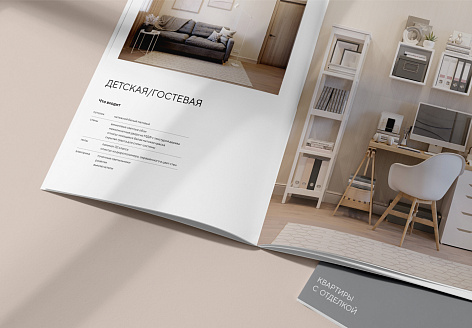 Буклет помогает клиенту не просто выбрать квартиру с отделкой, которая соответствует его вкусовым предпочтениям и финансовым возможностям, но и посмотреть, как будет выглядеть помещение при полной комплектации – с мебелью и декором.