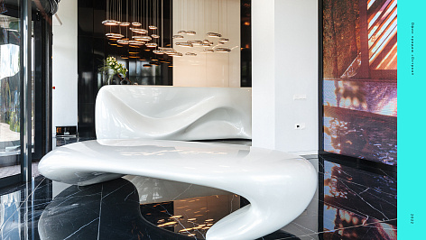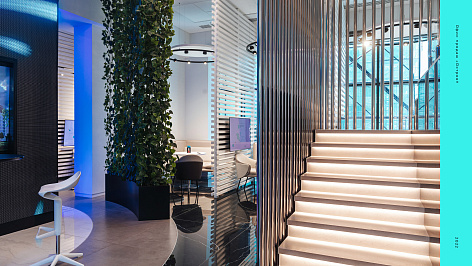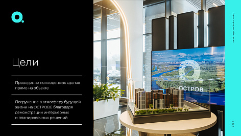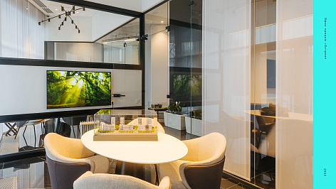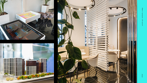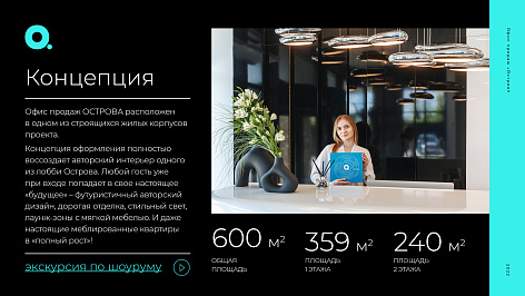 Офис продаж ОСТРОВА расположен в одном из строящихся жилых корпусов проекта (квартал Остров 1, корпус 4, секция 2). Концепция оформления полностью воссоздает авторский интерьер одного из лобби Острова. Любой гость уже при входе попадает в свое настоящее «будущее» – футуристичный авторский дизайн, дорогая отделка, стильный свет, лаунж-зоны с мягкой мебелью. И даже настоящие меблированные квартиры в «полный рост»!