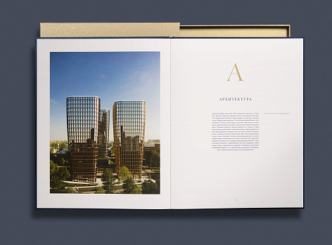 Так «Небо над Пресней» стало брошюрой в твердом переплете, дополненной плакатами с планировками и помещенной в роскошный золотой футляр.