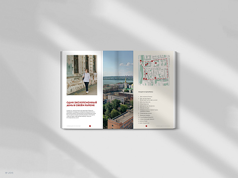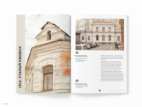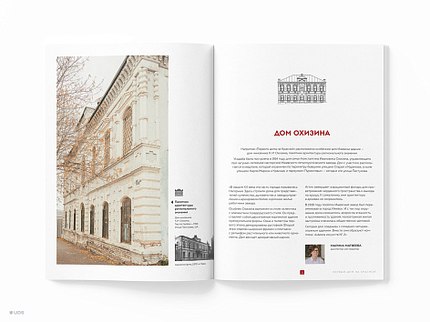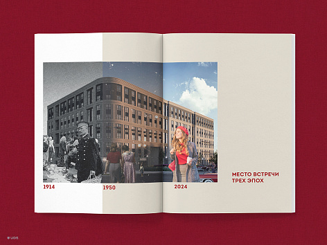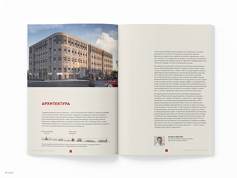 История и архитектура — темы, которые определили стилистику издания. Один из рекламных слоганов буклета — «место встречи трех эпох», и он достаточно точно отражает специфику объекта, окруженного зданиями дореволюционной эпохи, советского времени и современности. В буклете представлены комментарии экспертов, которые от первого лица рассказывают о специфике объекта, соседних зданий и архитектуре. В составе буклета представлен мини-гид, пользуясь которым будущие жители дома смогут совершать камерные экскурсии для своих близких.