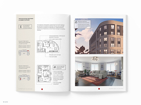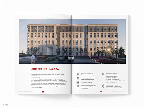 Буклет разработан собственной маркетинговой службой UDS. Размещался в отделе продаж UDS и офисах риэлтерских агентств города.