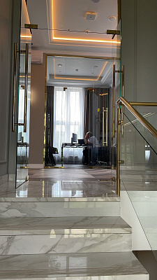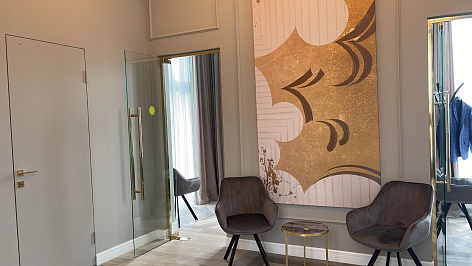 •Визуальный образ проекта выполнен из натуральных материалов: камень, дерево, стекло, золото.
