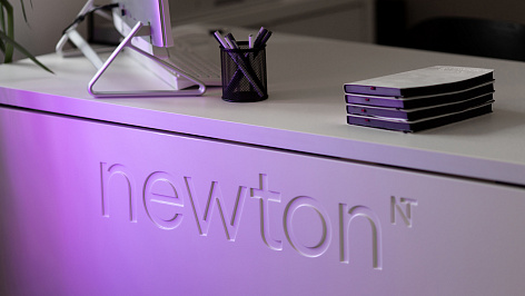 Клиент заказал разработку фирменного стиля с нуля. Стиль должен был отражать прогрессивный бизнес-подход «Ньютона» и быть достаточно универсальным, чтобы, окружая человека, не надоедать ему. В процессе работы мы расширили круг задач: придумать дизайн для рекламных носителей, а также создать масштабируемую визуальную систему, которая поможет брендировать любые продукты компании