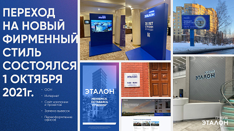 В 2020м году была сформирована пятилетняя стратегия развития Группы, определившая ключевые векторы: федеральная экспансия, эффективность, сервисный подход и инновации. И уже в 2021 году стало очевидно, что стилистика визуальных атрибутов Группы требует обновлений. Сохраняя преемственность в цветовом коде и нейминге – символ надежности и традиций, значимых для компании, новый фирменный стиль осовременил и освежил ее визуальный имидж. Нам хотелось, чтобы обновленная версия логотипа отразила ценности компании — устойчивость и надежность, инновационность и эффективность. Дизайнеры подхватили эту идею и заключили в лаконичных геометрических формах вектор нашего развития — вперед и вверх! Новый логотип Группы «Эталон» стал гораздо заметнее и эффектнее, а фирменный знак объединил кириллическую «Э» и латинскую «Е» — первую букву имени компании на русском и английском языках. Мы упростили визуальный образ в сторону функциональности, равновесия и баланса. Сочетая минимализм и динамику, логотип отсылает к истокам трафаретных шрифтов индустриальной урбанистической среды и к наследию русского авангарда.