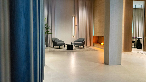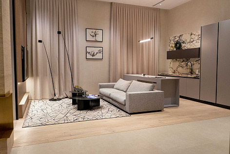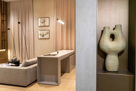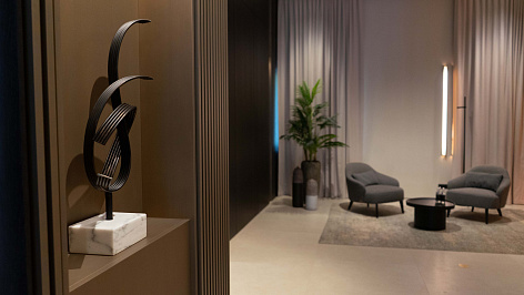 Расположенный в самом центре столицы, офис продаж сочетает в себе утонченную роскошь, элегантность и теплую домашнюю атмосферу. Квинтэссенция премиальных отделочных материалов и предметов искусства, дизайнерская мягкая мебель, lounge-зона с камином и грамотное зонирование создают ощущение камерности, прикосновения к чему-то уникальному.