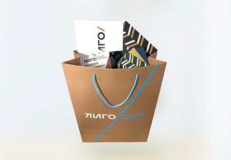 В айдентике бренда ЛИГО слеш символизирует идею мягкого распространения, экологичной экспансии ценностей бренда в окружающий мир, и как результат, его улучшение.