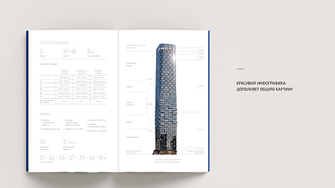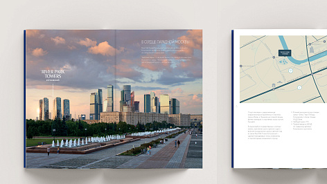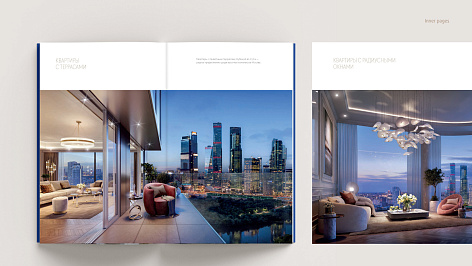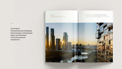 Наполненная захватывающими детальными визуализациями и интересными текстами, брошюра создает эффектные акценты на расположении, видах и инфраструктуре проекта.