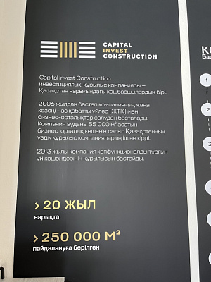 На данный момент Capital Invest Construction входит в топ-7 застройщиков города Алматы, являющимся самым крупным населенным пунктом Казахстана.