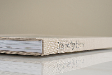 Слип-кейс выполнен из дизайнерского картона. Обложка покрыта хлопковой тканью, произведённой в Швейцарии. Логотип нанесён тиснением из матово-золотой фольги, на корешке надпись Naturally Yours.
