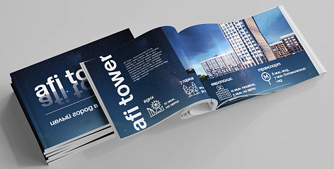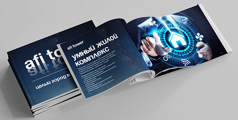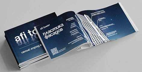 Графическое оформление брошюры подчеркивает идею небоскреба. Насыщенное наполнение, яркая типографика в сочетании с качественными технологиями печати привлекает внимание, показывая преимущества в красивом визуальном оформлении.