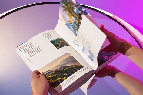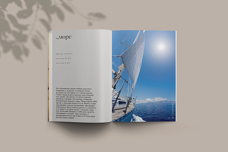 Минимализм цветовой гаммы в купе с фотографиями сочинских пейзажей передает всю красоту и уникальность Сочи.