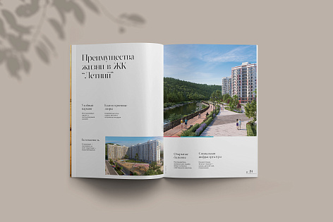 В буклете жилого комплекса "Летний" специально применена не правильная верстка, которая добавляет динамики, что отражает дух жизни в курортном городе.