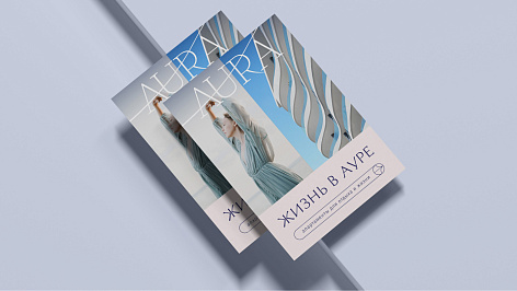 Бренд AURA транслирует воздушность, элегантность и утонченность, что подчеркивается также фирменными цветами и типографикой. Визуально чистые изображение, без лишних деталей в белых, голубых, синих и розовых цветах гармонично отображают концепцию бренда в фотостиле.