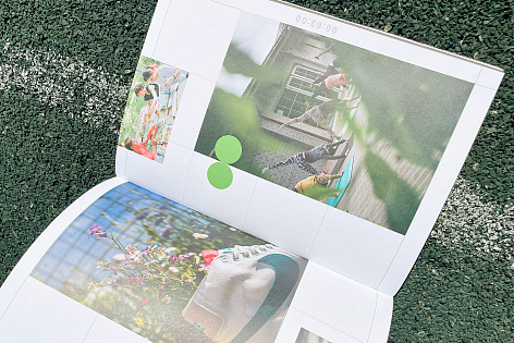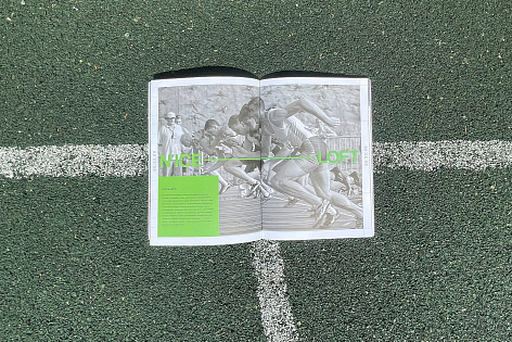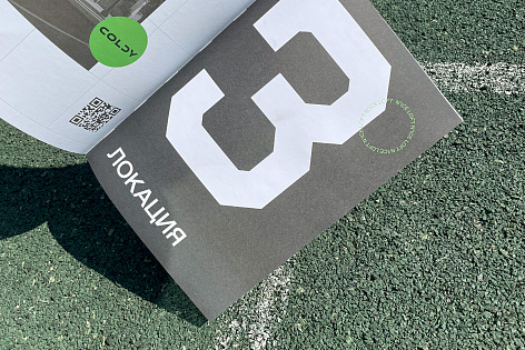 Главными элементами буклета стали активная сетка, отсылающую к разметке теннисных, футбольных и других спортивных площадок, масштабная типографика и нумерация страниц в формате тайминга секундомера.
