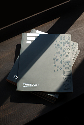 Перед командой стояла непростая задача: отразить в буклете все идеи многогранной концепции одного из самых масштабных проектов за Уралом — мультифункционального комплекса Freedom.