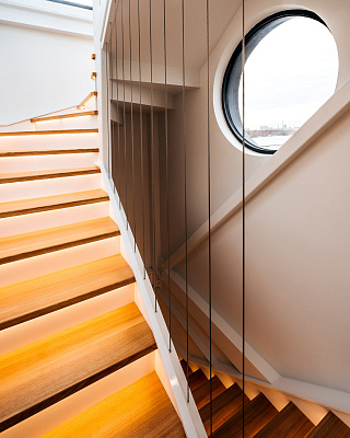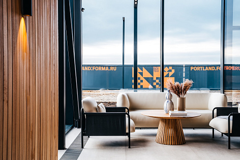 Новое дизайн-пространство площадью 382 кв. м расположено на территории строящегося жилого квартала Portland и концептуально объединено с ним единым архитектурным кодом, передающим энергетику морской гавани.