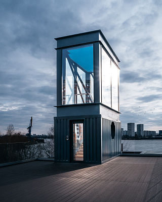 В архитектуре дизайн-пространства присутствует образ маяка со световым фонарем в верхней части смотровой башни, где находится выход на панорамную террасу, на которой установлен биноскоп. У гостей дизайн-пространства есть уникальная возможность разглядеть бобров на Бобровом острове, расположенном напротив площадки.