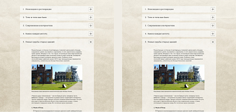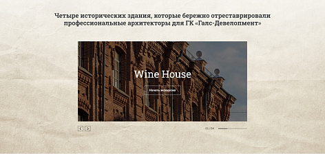 Контентные блоки постепенно погружают читателя в тематику и раскрывают проекты ГК «Галс-Девелопмент», направленные на сохранение культурного и исторического наследия городов России.