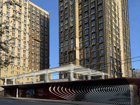 Яркий забор-ограждение позволяет привлечь внимание к жилому комплексу, который находится в тихом месте на северо-западе Москвы. Авторству Артема Стефанова также принадлежат арт-объекты, расположенные на территории ЖК и внутри зданий. Таким образом обеспечивается единство стиля.
