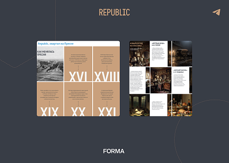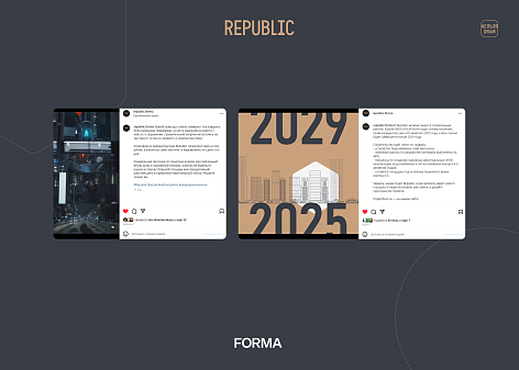 Исходя из платформы, ценностей бренда и целевой аудитории проекта, были разработаны тональность коммуникации, контентная стратегия и визуальная концепция для аккаунтов Republic в социальных сетях.