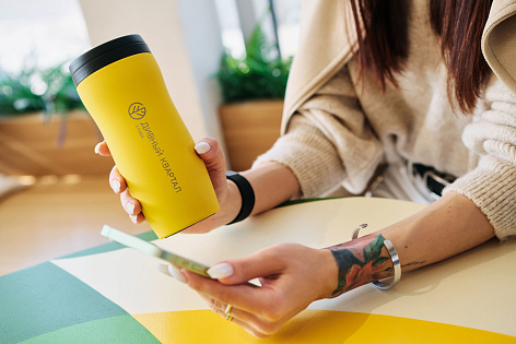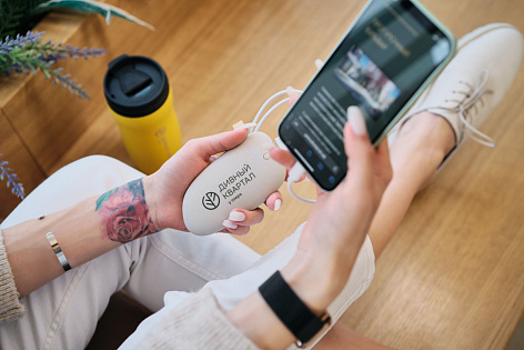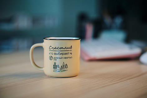 В качестве фирменной продукции разработаны: сумка-шоппер, кружка, термостакан, powerbank.