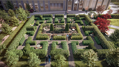 · Оригинальная концепция благоустройства и озеленения, вдохновленная английским парковым искусством.
