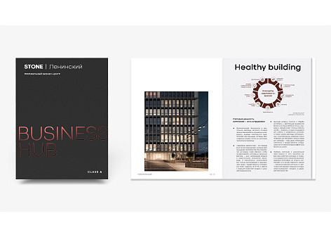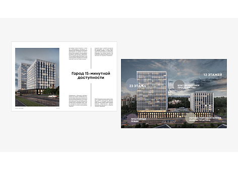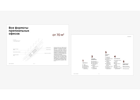 Задача буклета не только сформировать у клиента комплексное восприятие проекта, но также донести ценности бренда и подход, который девелопер закладывает в проектирование офисных пространств.