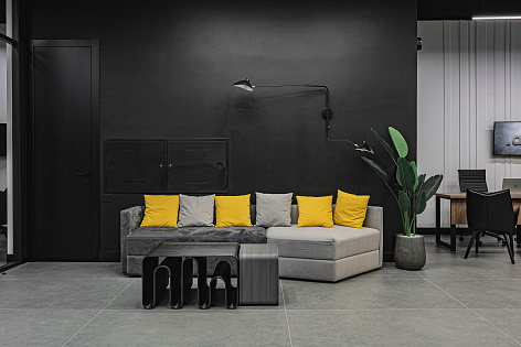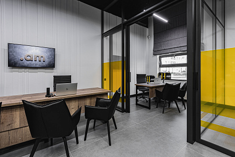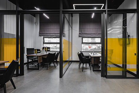 Дизайн-проект выполнен в стиле жилого квартала в черно-серо-желтых тонах. Сочетает в себе функциональность и дух покорителя и первооткрывателя. Здесь все продумано до мелочей от брутального аромата до эксклюзивной формы менеджеров по продажам от ТОП-стилиста страны Арсена Айрапетова.