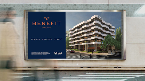 Имя Benefit презентует проект как комплекс выгод и преимуществ резидента. Нейминг можно рассматривать и с точки зрения масштабирования и адаптации к аналогичным проектам девелопера в других городах присутствия. Название Benefit остается неизменным, а дескриптор evopart меняется. Так формируется целая продуктовая линейка.