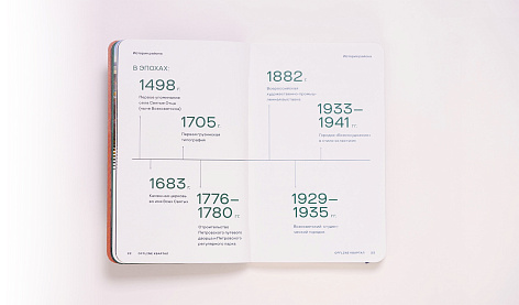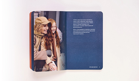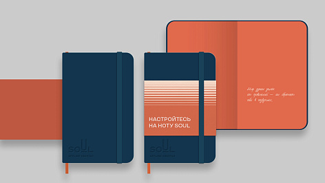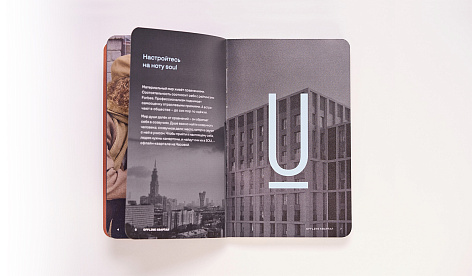 Звуковые волны, исходящие от камертона, стали дизайн-решением для верстки страниц буклета проекта. А сам буклета стал репликой знаменитого на весь мир скетчбука Moleskine. Этот формат, ввиду его компактного размера, автоматически ложится сверху всей кипы буклетов, книг, альбомов привычных стандартных размеров.