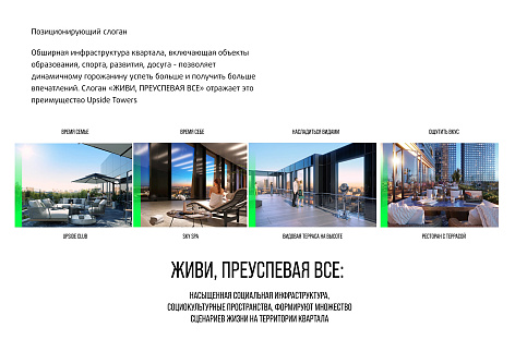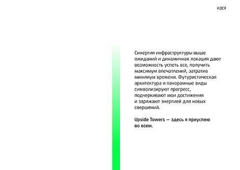 Upside Towers — синергия инфраструктуры выше ожиданий и динамичная локация дают возможность успеть все, получить максимум впечатлений, затратив минимум времени.