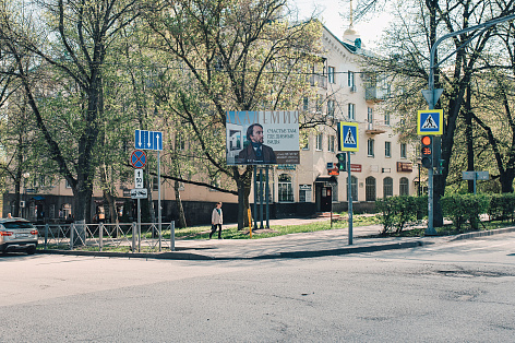В основу идеи коммуникации наружной рекламы легла связь истории и жизни в центре города. Формирование исторической ретроспекции в виде визуализации образа русского интеллигента, основанное на образах знаменитых жителей Пензенской губернии.