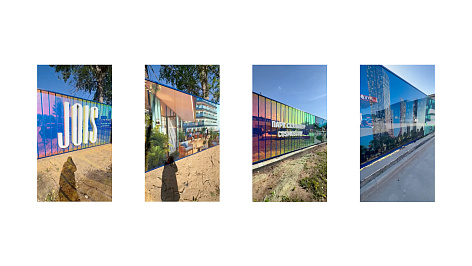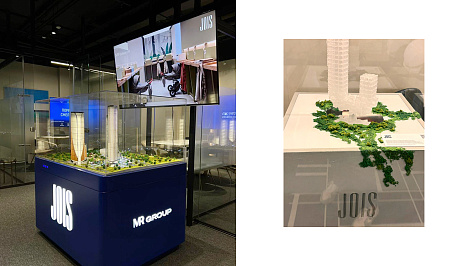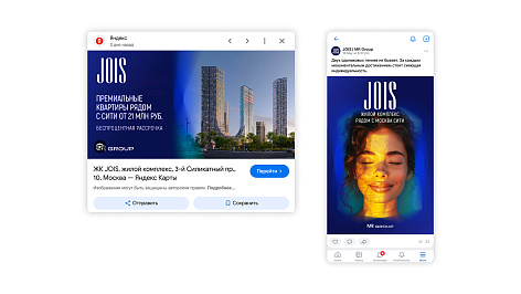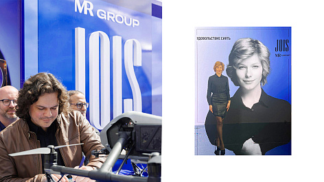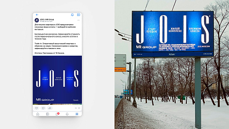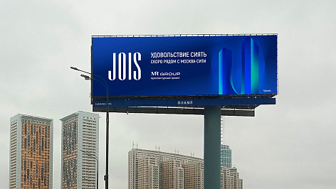 «Нестандартная архитектура проекта, оригинальная динамическая подсветка и современное искусство от Cosmoscow, интегрированные в ландшафтный парк, требовали яркого концептуального брендинга. Результат — использование оттенков синего, бликов и градиента в визуальном оформлении, а также слоган «Удовольствие сиять» в полной мере передают настроение JOIS».