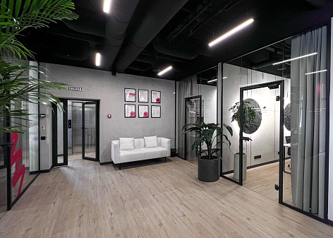 На первом этаже в зоне ресепшена вас встретит приветливый администратор, который направит к нашим дерзким экспертам, любезно предложит на выбор любой напиток и ответит на интересующие вопросы. Здесь большое количество зонированных переговорных с удобной мебелью и экранами для презентаций, современные зоны ожидания, а для юных клиентов создана детская зона с игрушками и экраном, на котором показывают любимые всем мультфильмы.