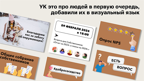 Многие собственники впервые сталкиваются с таким типом жилья и имеют много вопросов. Часть собственников сдает свою недвижимость и отсюда у нас 2 ЦА для коммуникации: Жители и Собственники. У них зачастую разные интересы, так жители больше хотят видеть актуальные новости по комплексу, а собственники информацию по ОСС и налогам. Так же в нашем случае УК нанимается ТСН (товарищество собственников недвижимости), поэтому открытость и прозрачность — главные принципы коммуникации.