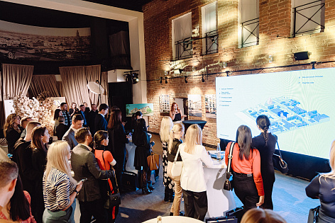 - также на экране для гостей был презентован сам клубный дом. О его преимуществах, технологических характеристиках и эстетике рассказывали коммерческий директор компании и директор по маркетингу;