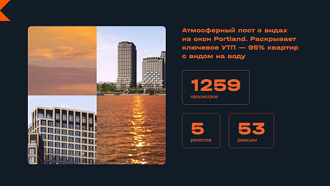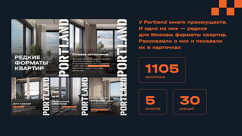 В чем идея: мы решили поселить в Portland персонажей, которые резонируют с разными сегментами ЦА (творческие, активные и спортивные, семейные пары с детьми и владельцы домашних животных, инвесторы). И говорить о проекте как о прибрежном курорте на востоке Москвы, где уже можно отдыхать. Так соцсети Portland стали отражением опыта будущей жизни в квартале. Мы помогаем аудитории представить себя резидентами и почувствовать настроение квартала, пока он строится.