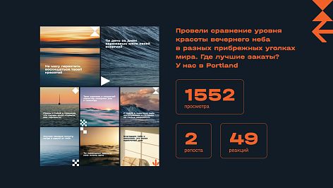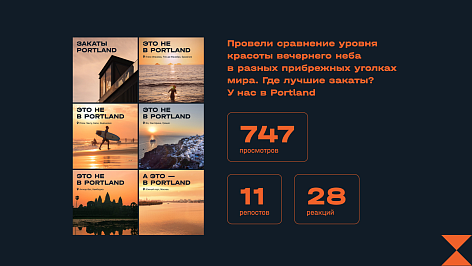 Атмосфера подкрепляется неформальным ToV и впечатляющими вижами. Историю о том, что в Portland все время что-то происходит, поддерживаем вовлекающими и интерактивными форматами контента, а также прямыми включениями в виде кружочков.