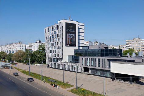 Концепция макетов решена в минималистичной стилистике. Мы выбрали два наиболее выигрышных ракурса, раскрывающих особенности архитектуры. Убрали всё лишнее с 3D-визуализаций. Рендеры разместили на тёмном контрастном фоне, который наиболее выигрышно выглядит на digital-носителях, контрастируя с окружением города.